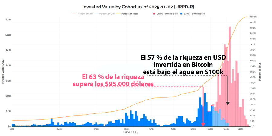 El 63 % de la riqueza en Bitcoin se concentra sobre los $95 000.