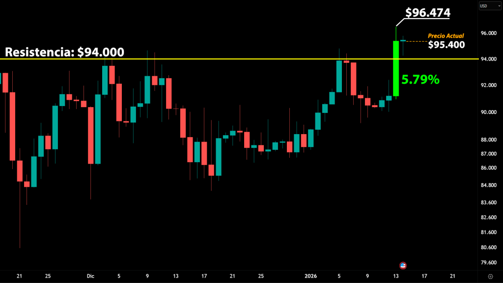 El soporte inmediato se concentra entre $94.500 y $95.000. Mientras esta zona se mantenga, el escenario base sigue siendo de consolidación saludable. Una pérdida clara de los $94.000 cambiaría el tono y podría abrir la puerta a una corrección más profunda.