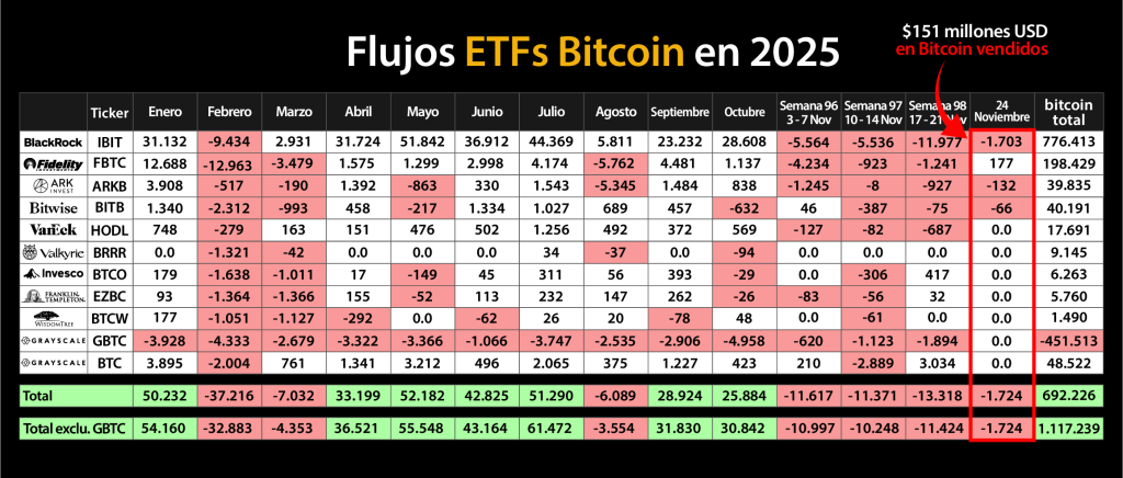Mientras los ETF de Bitcoin registraron salidas netas por $151 millones.