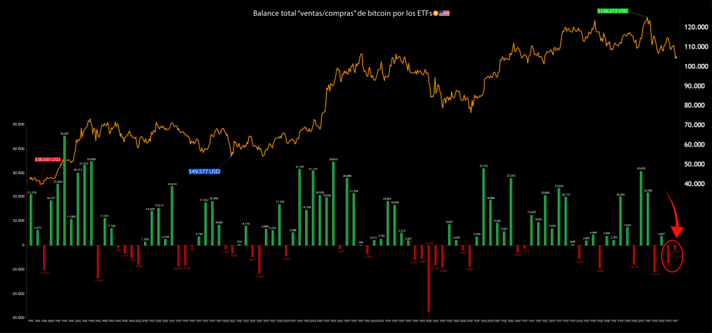 • La presión proviene de salidas de fondos de ETF, debilidad macroeconómica y tenedores de largo plazo distribuidores, lo que podría señalar un mercado próximo a una nueva fase de corrección.