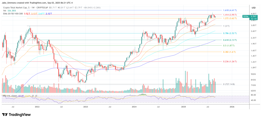 $3,79 billones es la capitalización total del mercado cripto en septiembre de 2025.