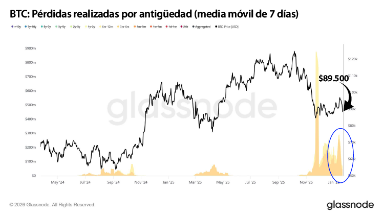 Este comportamiento recuerda a dinámicas observadas a inicios de 2022, cuando los repetidos fracasos en recuperar los precios de equilibrio prolongaron una fase de consolidación lateral. Según los analistas, el patrón actual sugiere que el exceso de oferta no ha sido completamente absorbido, lo que limita la continuidad de los repuntes y deja al mercado vulnerable a nuevas rondas de distribución. Los datos on-chain muestran que la materialización de pérdidas está dominada por tenedores con antigüedad de 3 a 6 meses, mientras que la toma de ganancias proviene, en gran medida, de operadores que aseguran retornos relativamente modestos. Esta rotación rápida del capital es característica de mercados transicionales, donde la convicción direccional es baja y el horizonte de inversión se acorta.