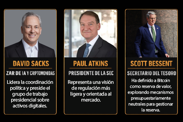 Este bloque ejecutivo no impulsa un discurso maximalista, sino una narrativa de competitividad nacional, donde Bitcoin se integra como una pieza más aunque disruptiva del tablero económico.