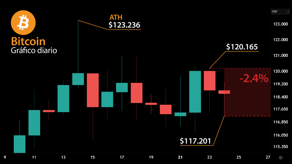 - Bitcoin cae por debajo de $120.000 y activa alarmas técnicas
