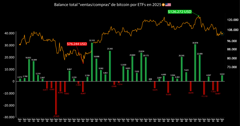 El renacimiento del flujo hacia los ETF podría ser un indicio temprano de reacumulación institucional. No obstante, la recuperación sostenida del mercado requerirá flujos al contado amplios y consistentes que impulsen a Bitcoin por encima de la resistencia entre $108.000 y $110.000 USD.