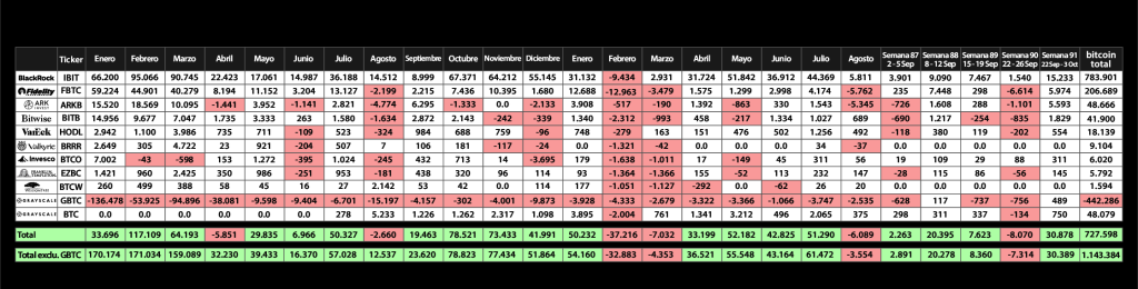 Más allá del dominio de Bitcoin, Ethereum protagonizó también una semana excepcional con $1.480 millones en entradas, lo que eleva su acumulado anual a $13.700 millones, casi el triple del total de 2024. Los ETF spot de Ethereum en EE. UU. aportaron $1.300 millones de esa cifra, destacando el ETHA de BlackRock, que atrajo $691,7 millones.