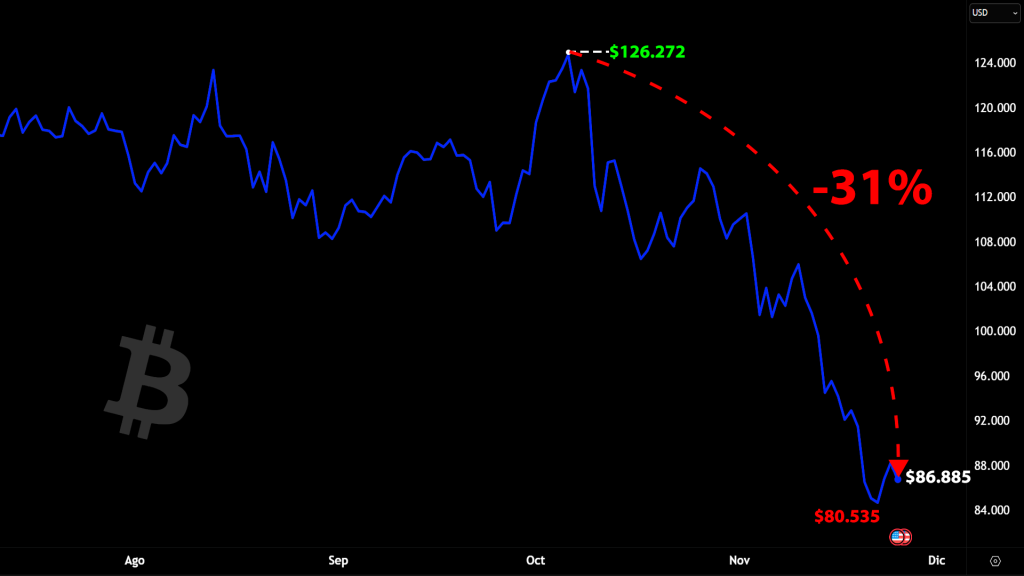 Mientras Hong Kong refuerza su apuesta regulatoria, Bitcoin atraviesa una fase de consolidación. Actualmente cotiza en $86,885.32, con un valor de mercado de $1.73 billones y una dominancia del 58%. El volumen diario, de $69.15 mil millones, registra un avance del 3.37%, mientras que el precio ha subido 1.06% en las últimas 24 horas, aunque mantiene una caída de 4.77% en el acumulado semanal.