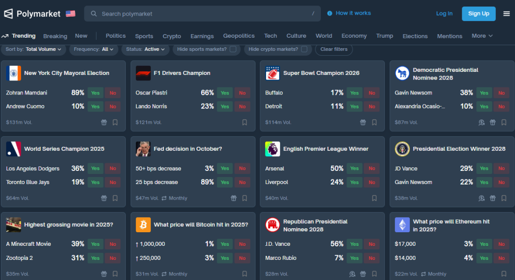 De hecho, en Polymarket los mercados de predicción relacionados con bitcoin acumulan una importante tracción y volúmenes comerciales. Por ejemplo, el mercado para predecir los precios que alcanzará bitcoin en 2025 es uno de los más grandes en Polymarket, contando en la actualidad con más de $31 millones en volumen mensual.