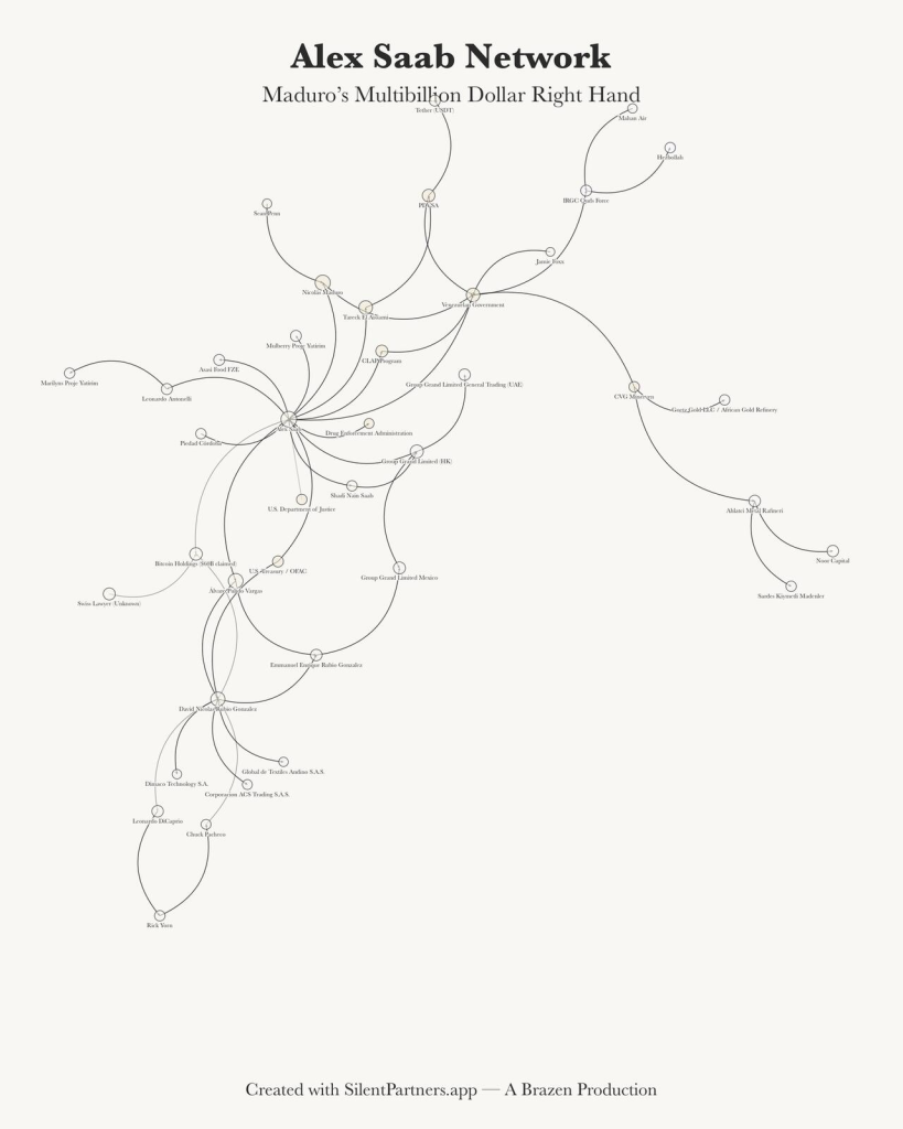 En escenarios de crimen financiero transnacional, estas figuras intermedias suelen convertirse en piezas clave. No necesariamente por el capital que controlan, sino por el conocimiento que poseen sobre la arquitectura del sistema. Otro nombre inevitable es el de Alex Saab. Empresario, operador financiero y figura central en los esquemas de evasión de sanciones, Saab ya cooperó con la DEA en el pasado y fue posteriormente indultado por un presidente estadounidense. Hoy, su posición resulta nuevamente estratégica. Un exfiscal venezolano lo definió como “el garante de la fortuna de Maduro”, una afirmación que, de confirmarse, lo situaría como uno de los custodios más relevantes del capital digital del régimen.