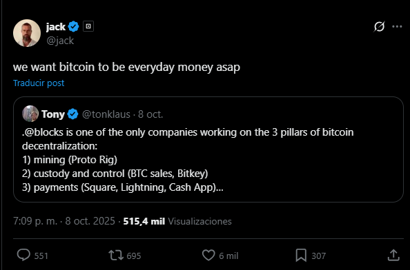 Esta iniciativa se enmarca en la estrategia más amplia de Block, que con el liderazgo de Dorsey destacado por adoptar y ofrecer soluciones basadas en BTC. El objetivo de la compañía es hacer que bitcoin sea más accesible y útil como «dinero de todos los días», y no solo como una reserva de valor.